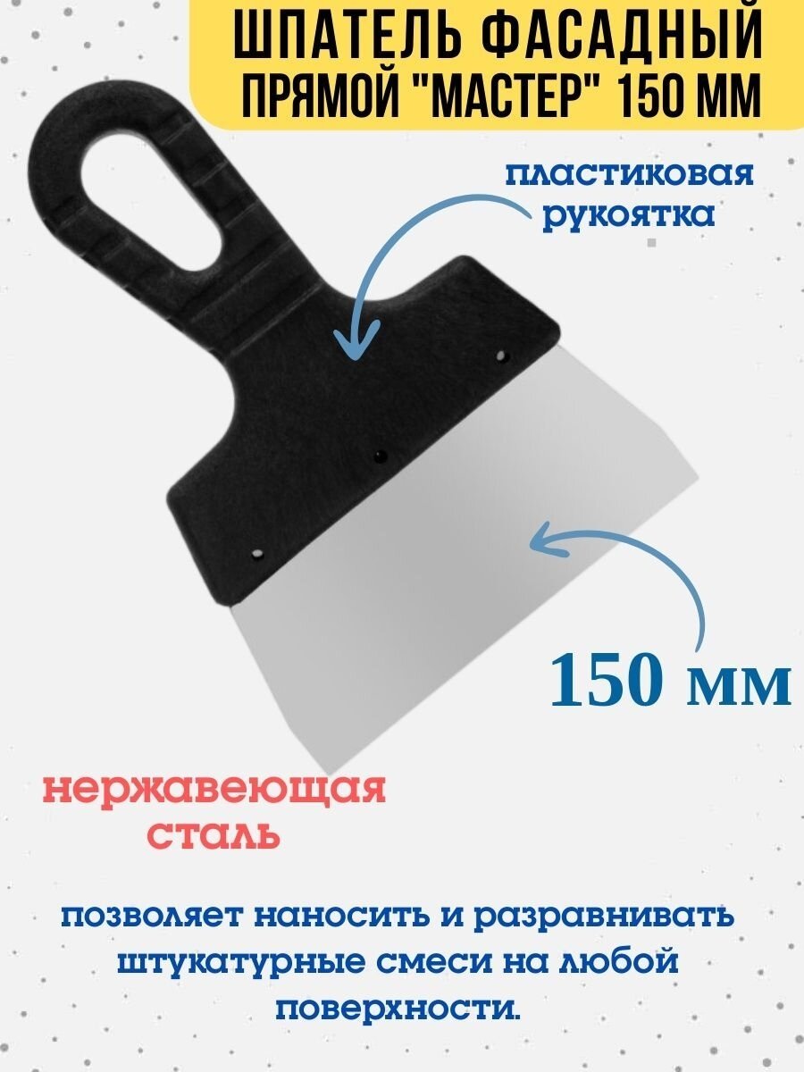 Шпатель фасадный Remocolor прямой нержавеющая сталь пластиковая ручка 150мм 12-5-150 серия Мастер интересное: