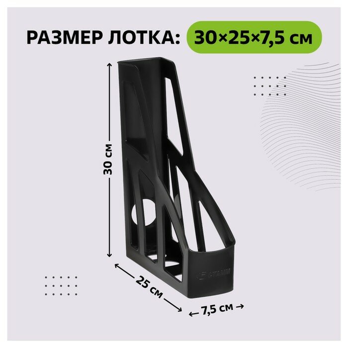 Лоток для бумаг Лоток вертикальный для бумаг СТАММ "Лидер" (250х300 мм), ширина 75 мм, черный, полипропилен, ОФ100