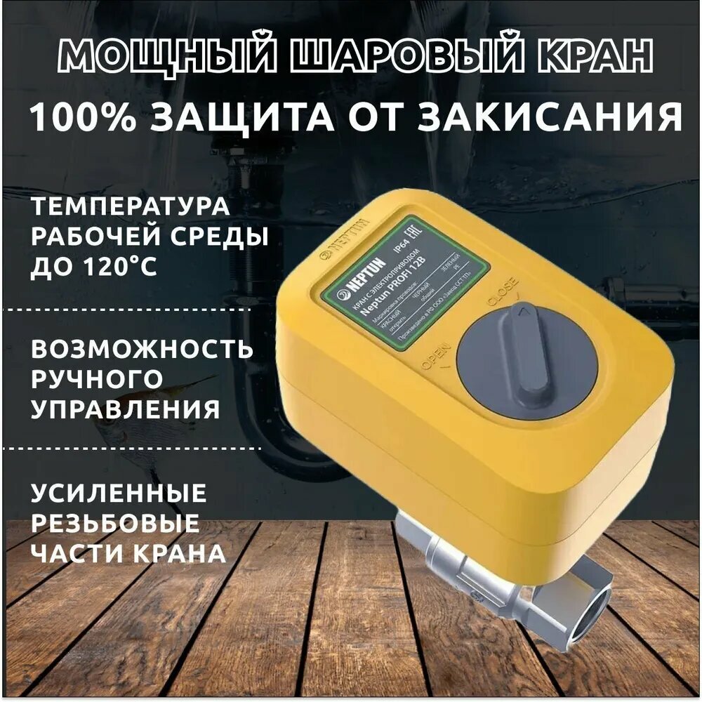 Кран шаровой с электроприводом Neptun Profi 12В 1 1/4 дюйма IP64