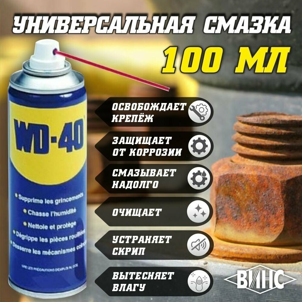 Универсальная смазка WD-40 проникающая 100 мл, аэрозоль, жидкий ключ.