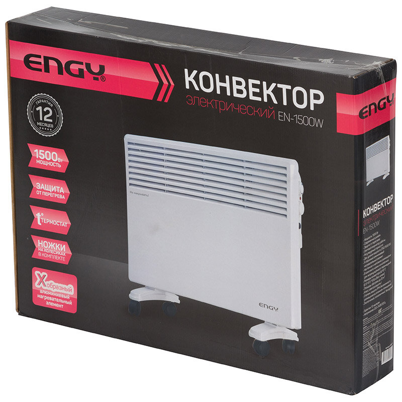 Купить Конвектор электрический с терморегулятором EN-1500W 1500 Вт IP24 брызгозащитный 010557 Engy