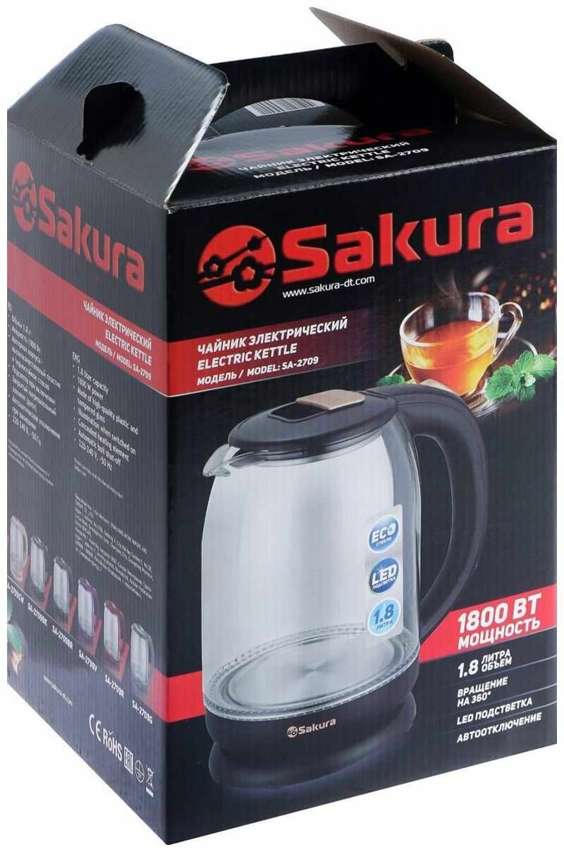 Купить Чайник электрический Sakura SA-2709BK (1.8) стеклянный черный с подсветкой
