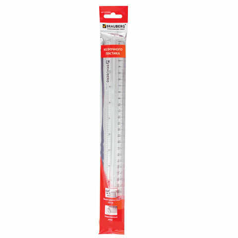 Линейка 30см Brauberg, с держателем, прозрачная (210303)