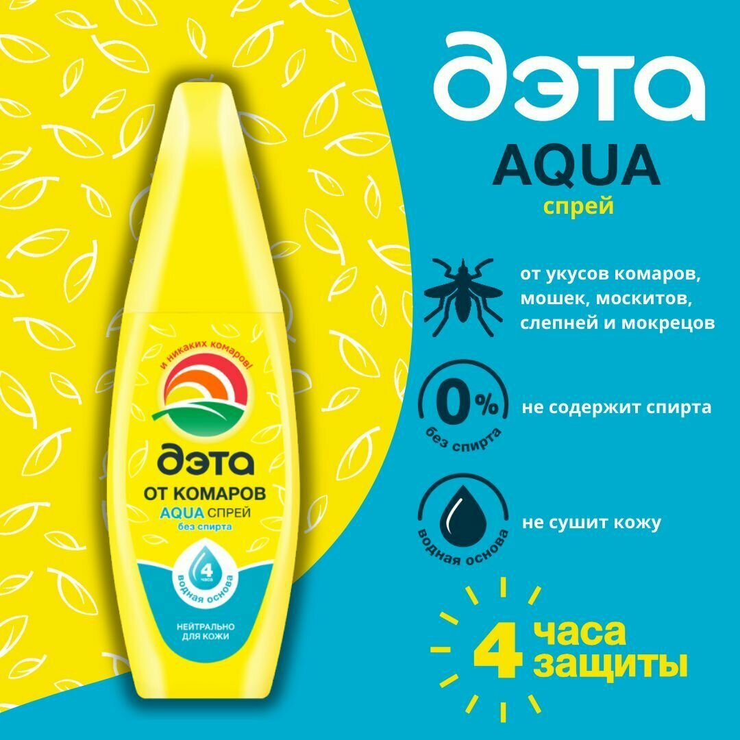 ДЭТА Спрей репеллентный от комаров "ДЭТА аква", на водной основе, 100 мл