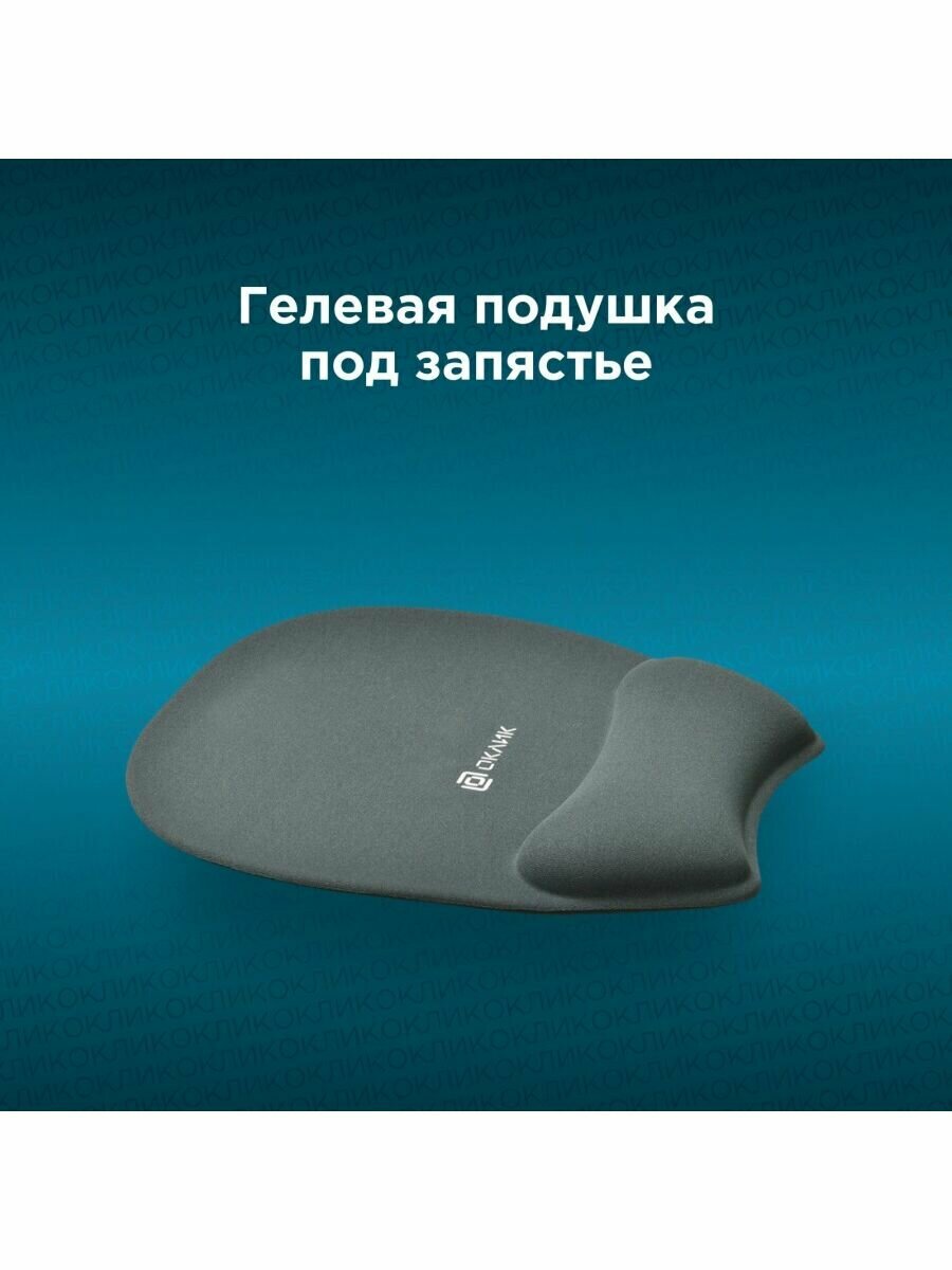 Коврик для мыши Oklick 245x220x24 мм, с гелевой подушкой под запястье, серый (OK-RG0580-GR)