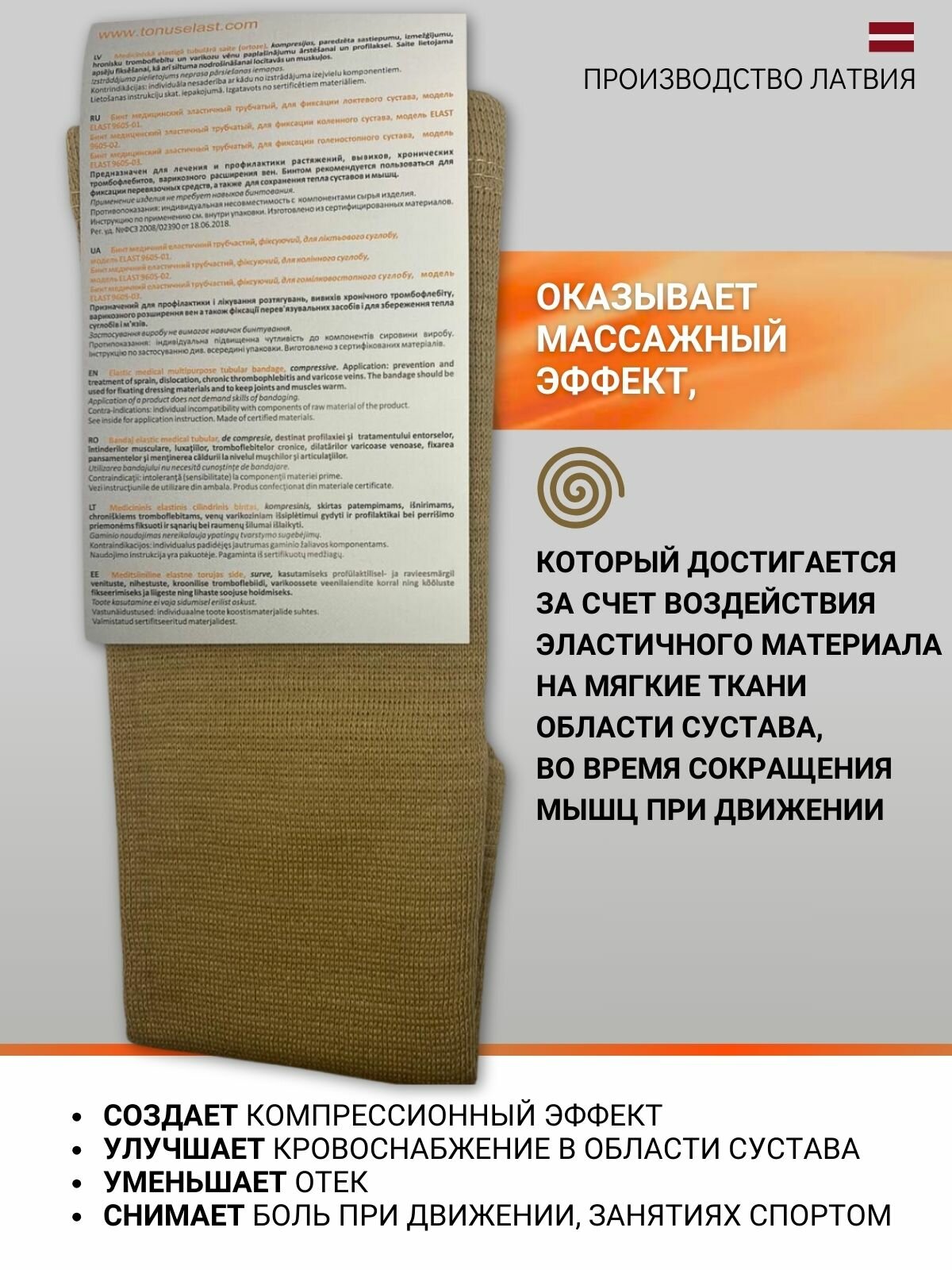 Tonus Elast Бинт эластичный трубчатый для фиксации локтя, колена - 3 размер бежевый интересное: