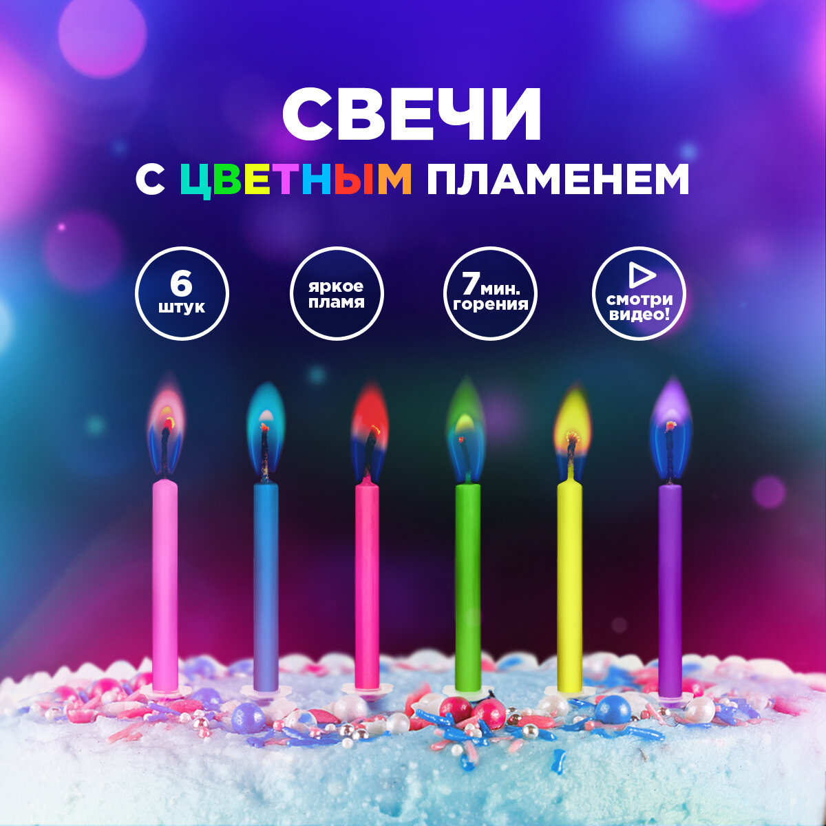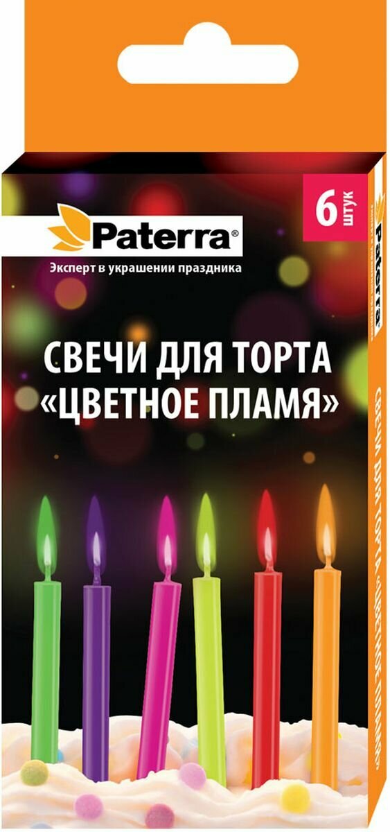 Свечи для торта цветное пламя, PATERRA, 6шт. в упаковке (401-520) интересное: