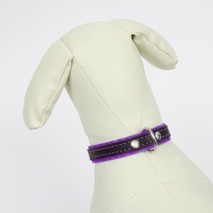 Купить Ошейник Аркон кожаный с подкладом "Фетр", 1,6 см, ОШ 20-28 см, чёрный/фиолетовый