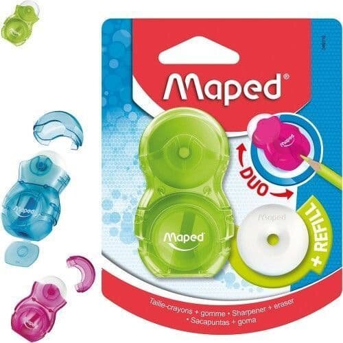 LOOPY 2в1 Точилка MAPED 1 отверстие + ластик, с контейнером и дополнительным ластиком, цветная, в блистере, цвет розовый