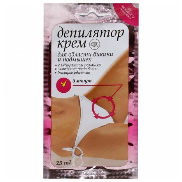 Крем-депилятор с экстрактом ромашки для области бикини и подмышек Быстрое удаление, 25 мл 1 шт