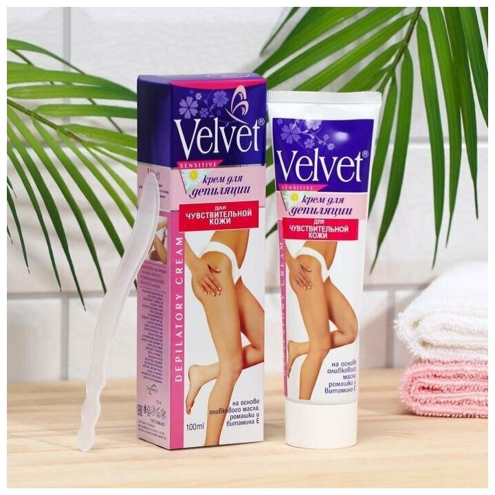 СохранитьВельвет Крем для депиляции для чувствительной кожи на основе оливкового масла, ромашки и витамина Е со шпателем, 100мл / средство для удаления волос интересное: