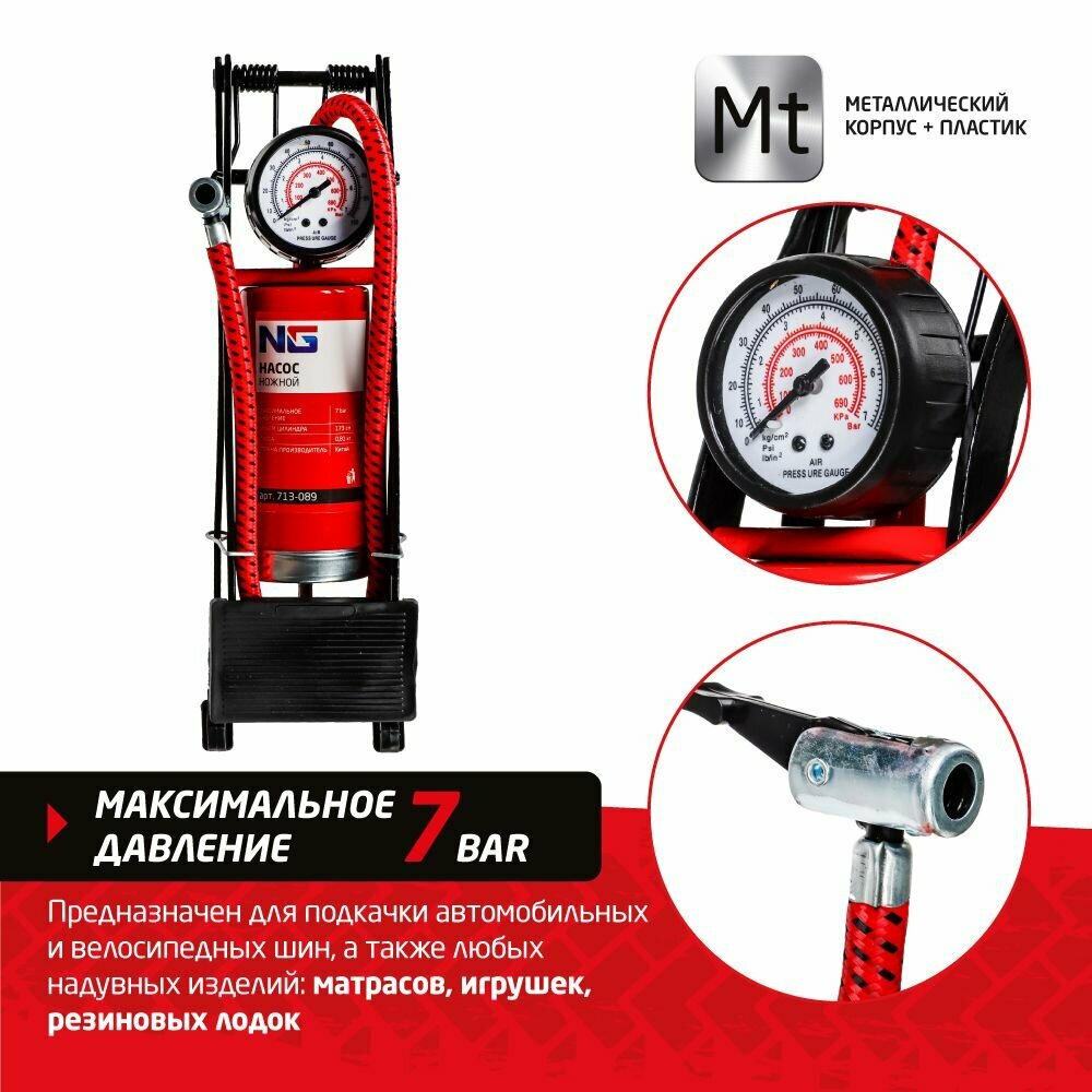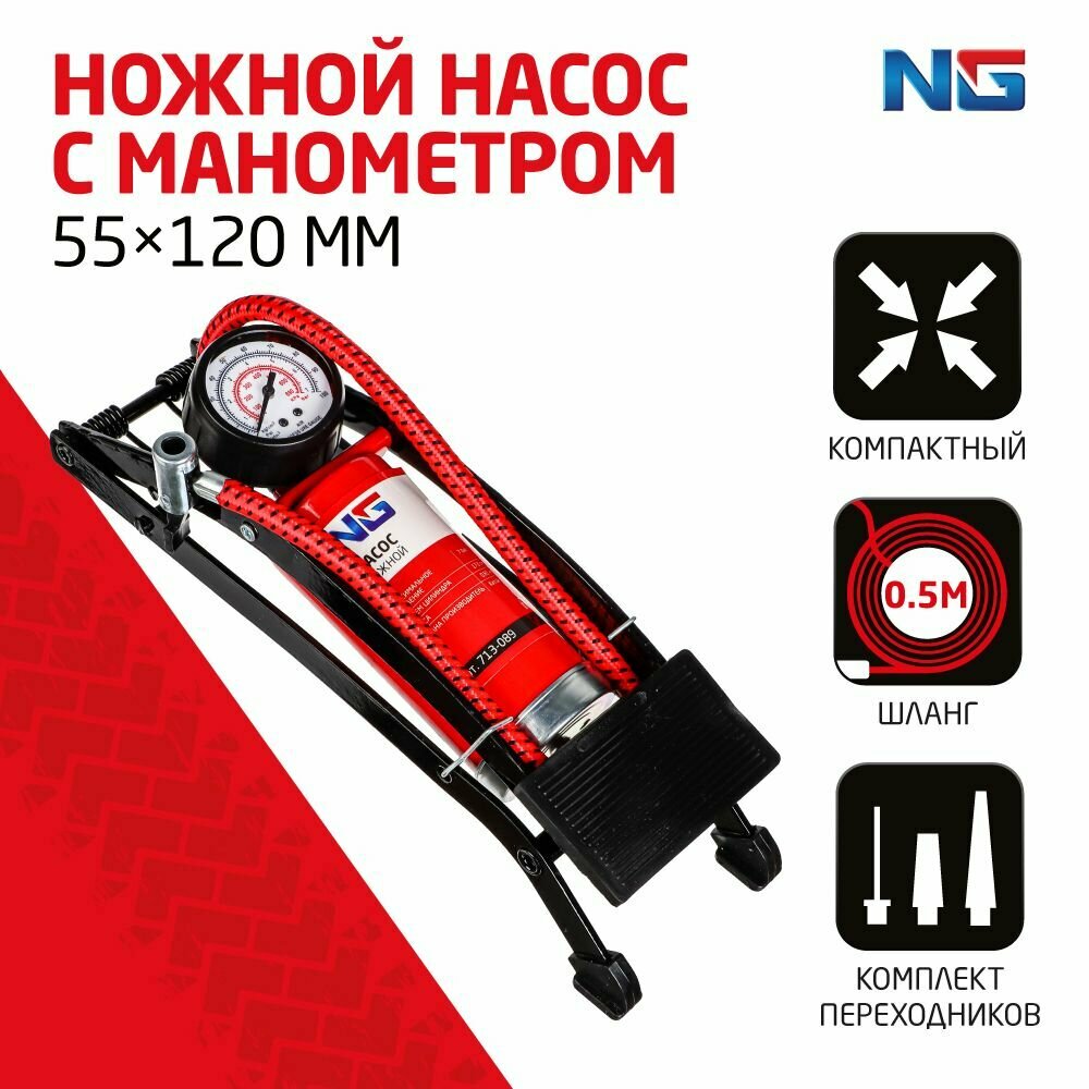 Насос ножной NEW GALAXY, манометр, 55x120мм, Стандарт
