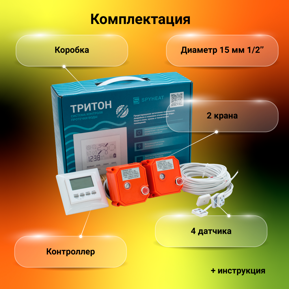 Система контроля протечки воды SPYHEAT тритон 15-002, 1/2 дюйма - 2 крана