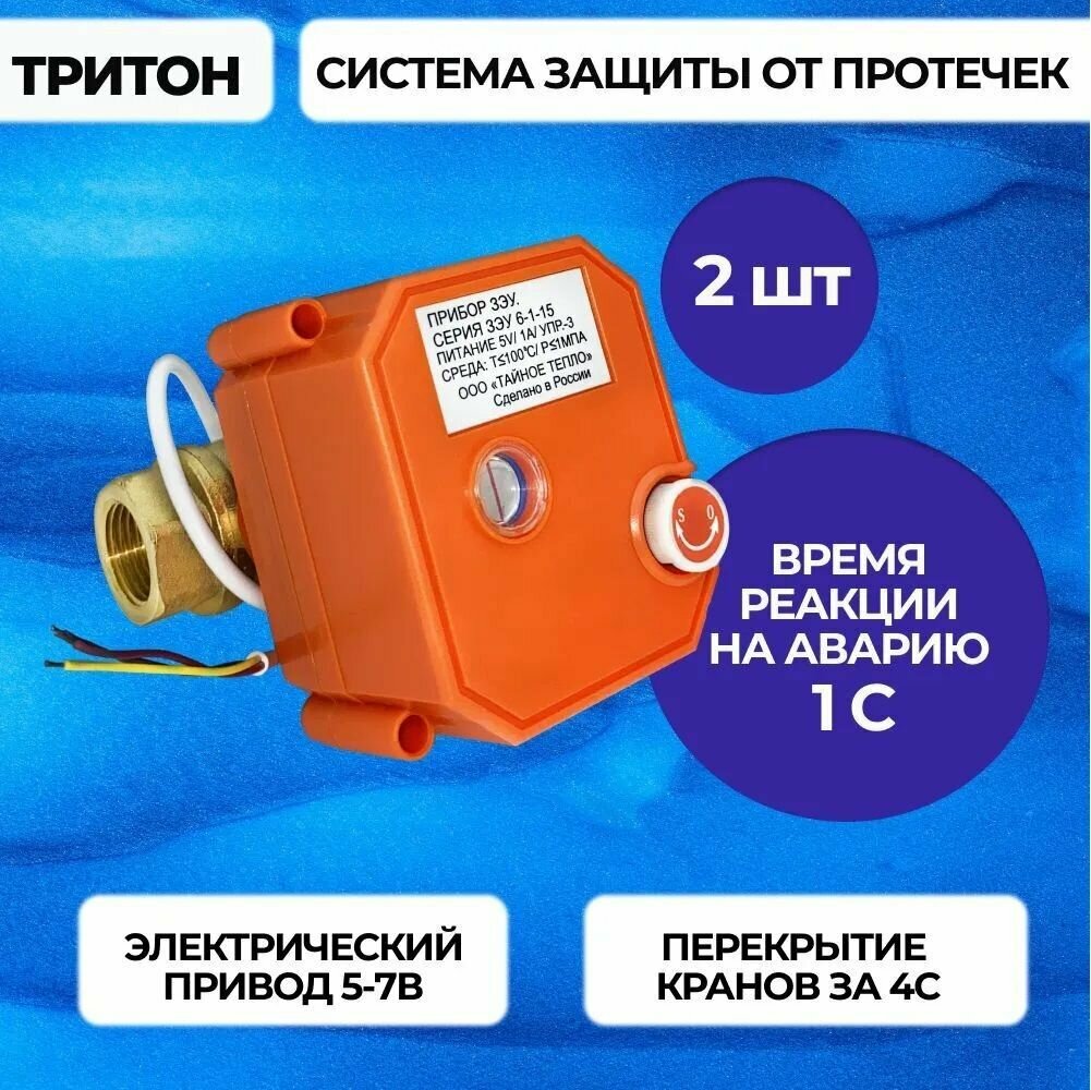 Система защиты от протечек воды с датчиками - система тритон 15-002 - 1/2" (2 крана)