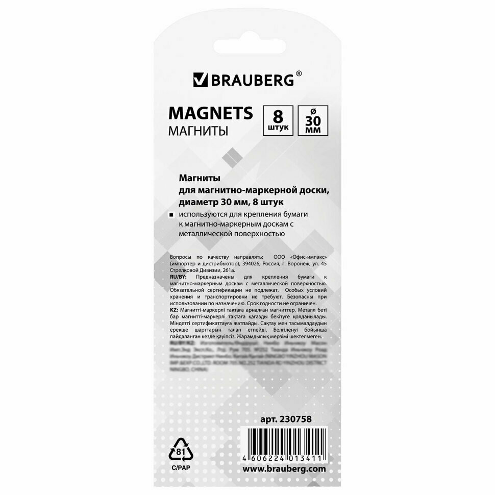 Магниты, 30 мм, 8 шт. BRAUBERG 230758