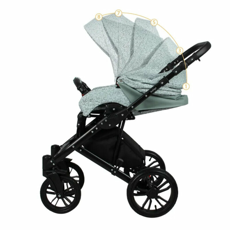 Коляска 2 в 1 Indigo Mio Plus 14, Mi06 шалфей кожа/зеленый узор