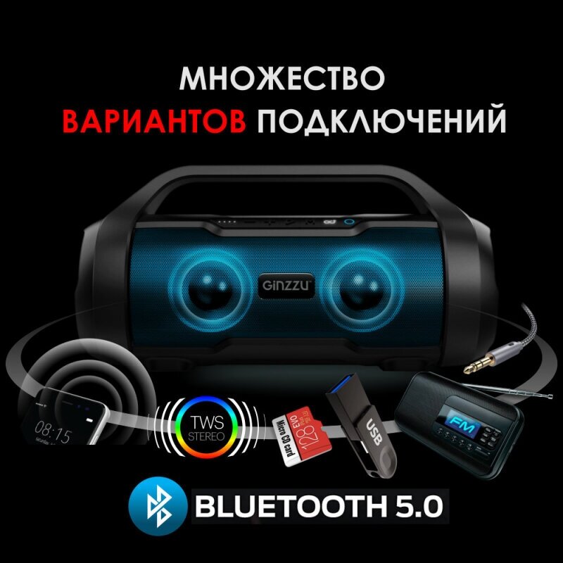 СохранитьПортативная акустика Ginzzu GM-984G, 20 Вт, черный интересное: