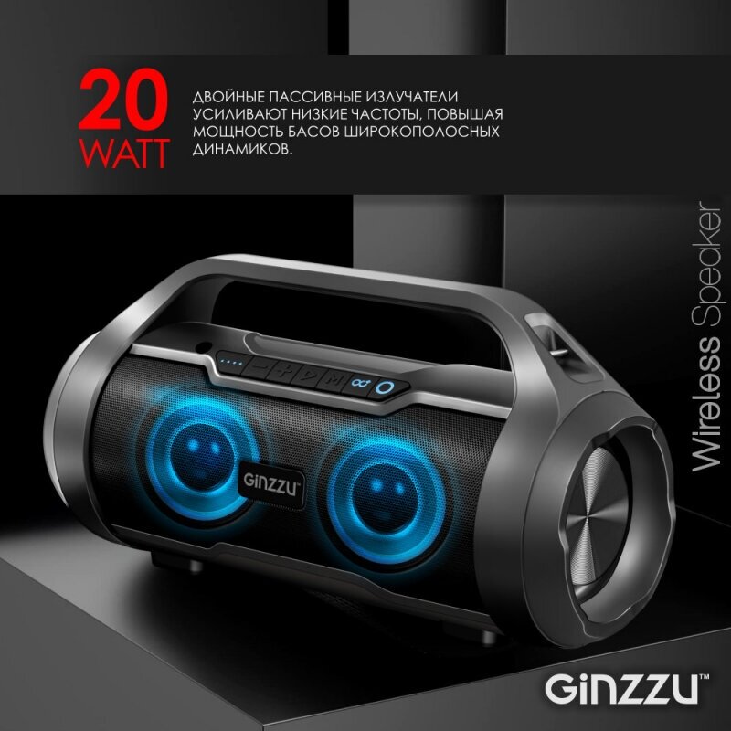 Колонка Ginzzu Gm-984g портативная 20 Вт, черный (00-00001510) .