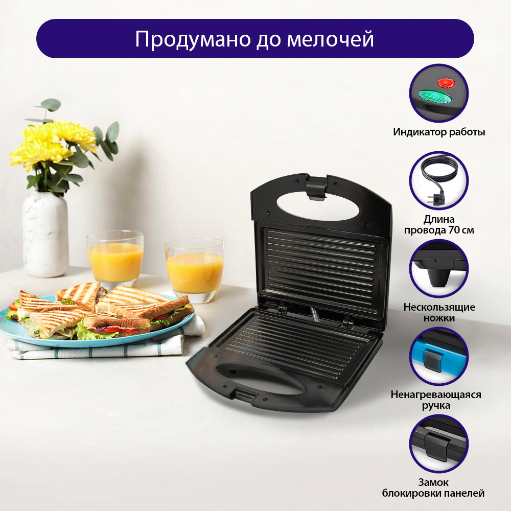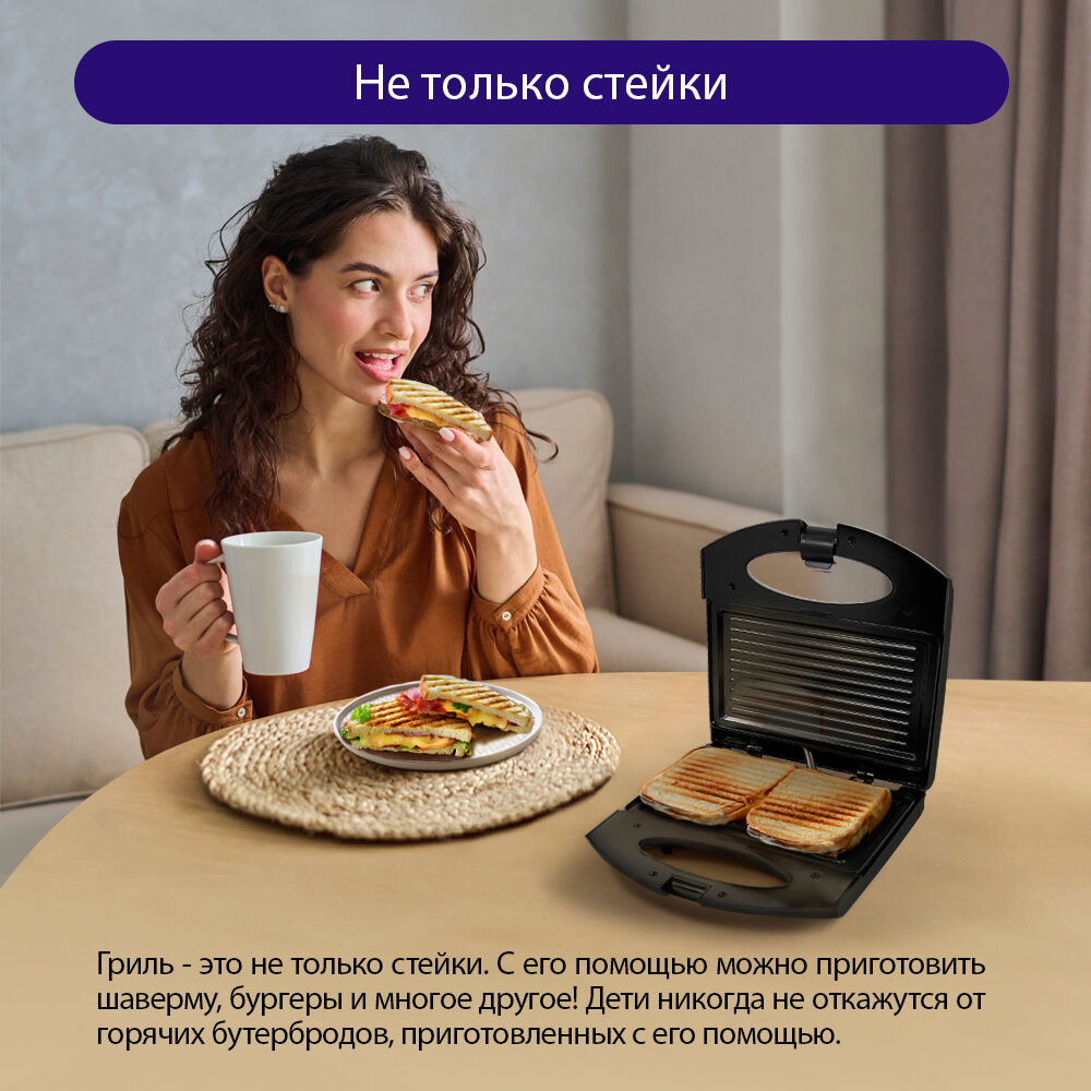 | Плюсы: | недорогой, компактный, быстро в нем готовить сендвичи |