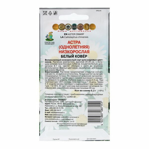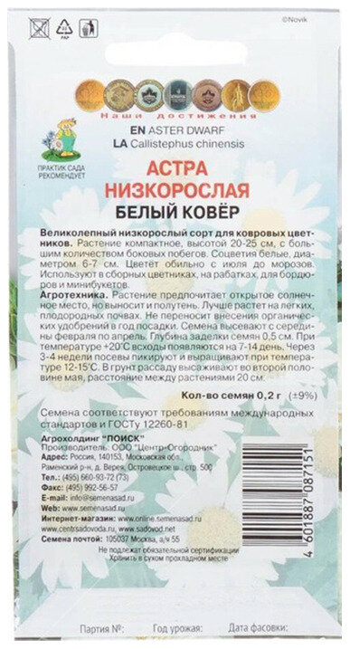 Семена Астра Белый ковер низкорослая 0,2 г (Поиск) интересное: