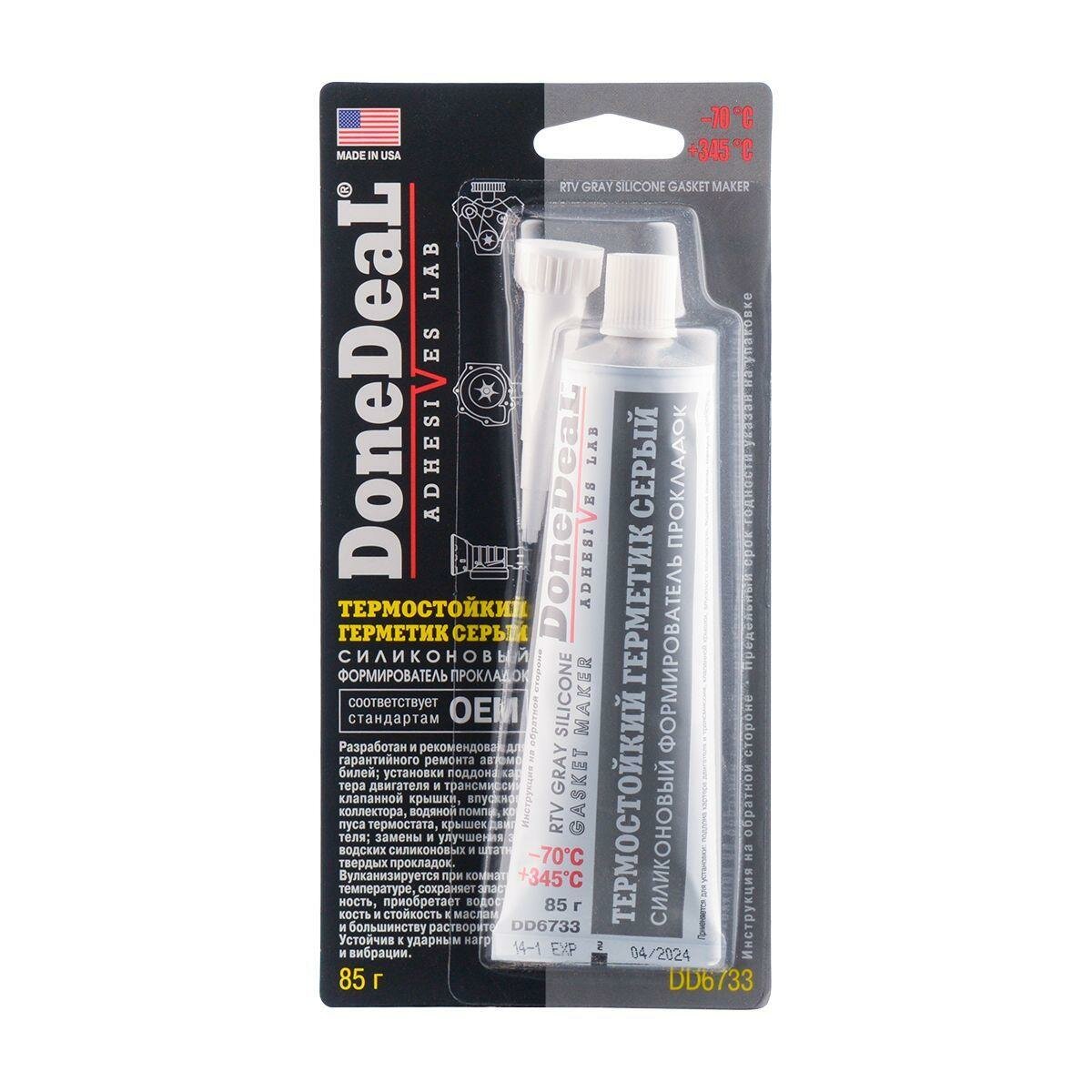 Герметик-прокладка DoneDeal RTV Gray Silicone Gasket Maker, силиконовый, термостойкий, серый, туба 85г, арт. DD6733