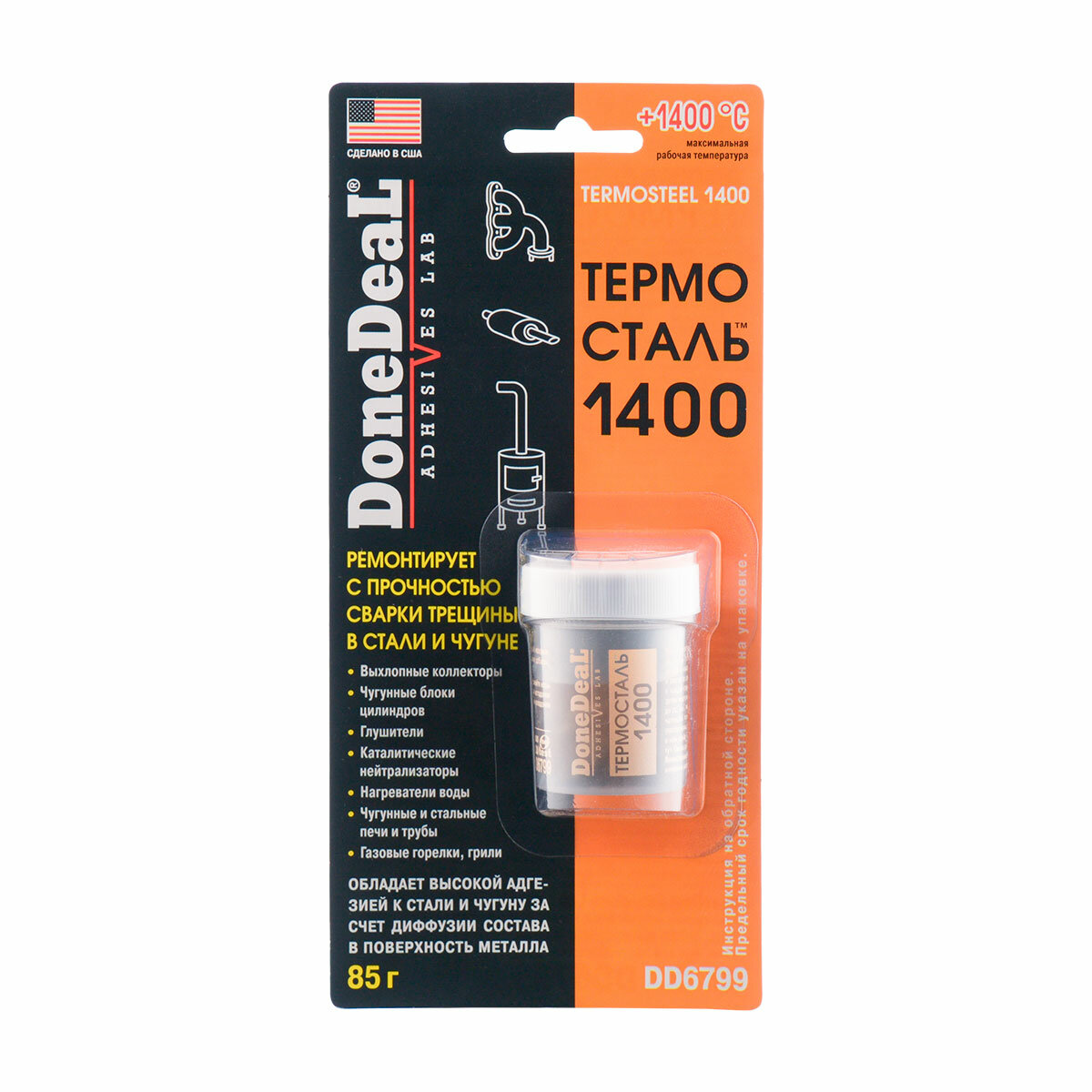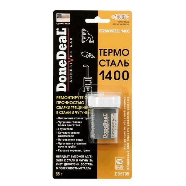 Термосталь- термостойкий (до 1400 С) сверхпрочный ремонтный герметик Done Deal DD6799