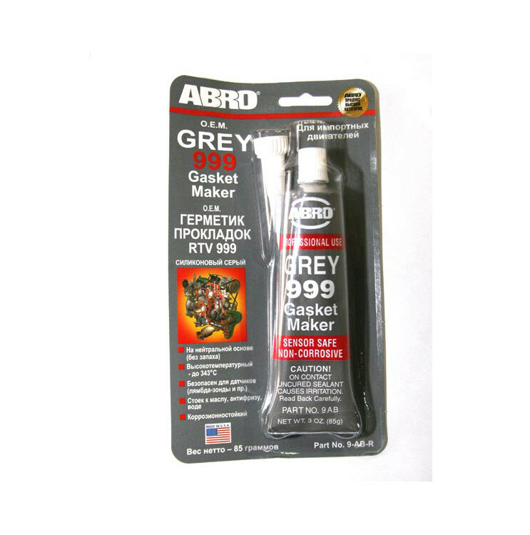 Герметик-прокладка ABRO OEM Grey 999 Gasket Maker, силиконовый, термостойкий, серый, туба 85г, арт. 9-АВ
