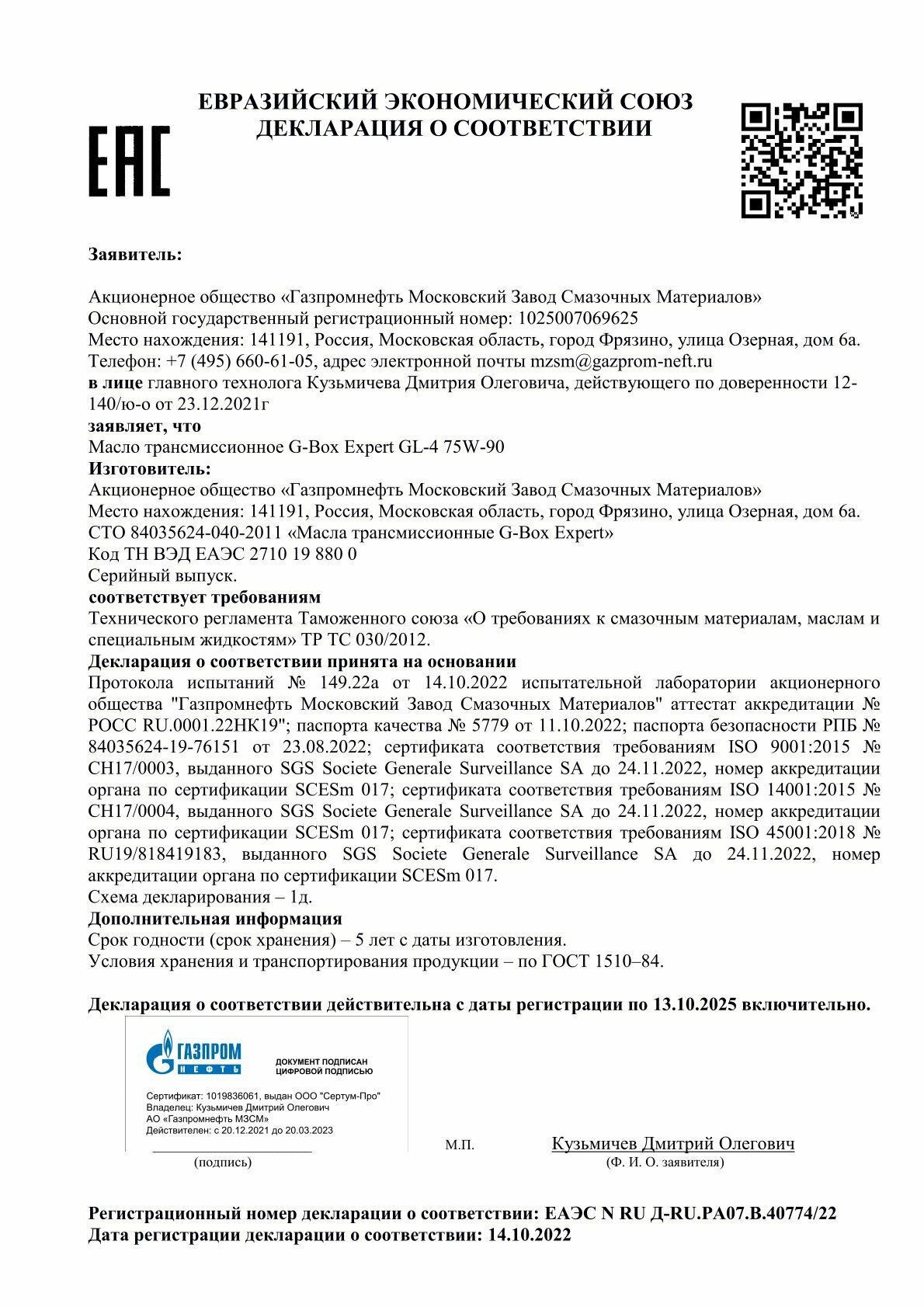 Купить Масло трансмиссионное G-Energy G-BOX EXPERT GL-4 75W-90, 75W-90, 1 л, 1 шт.