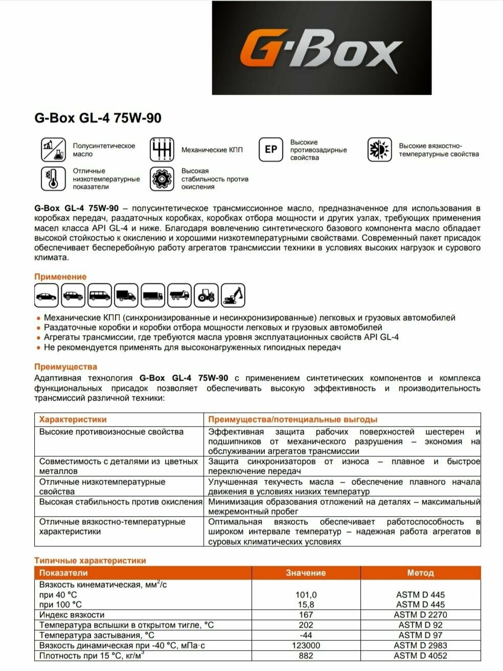Трансмиссионное масло G-BOX GL-4 75W90 1л