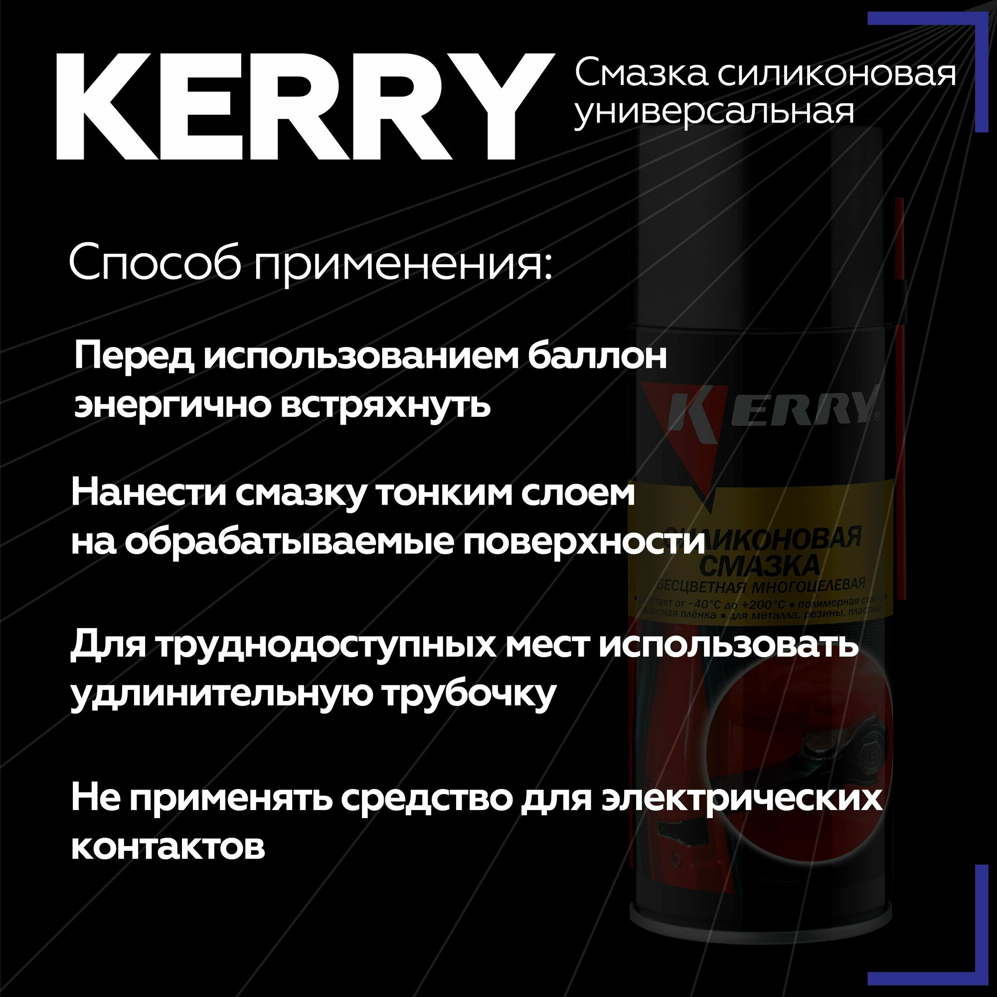 KR-941-1 Смазка универсальная силиконовая -40С/+200С Клапан 360 ° аэрозоль 210мл KERRY