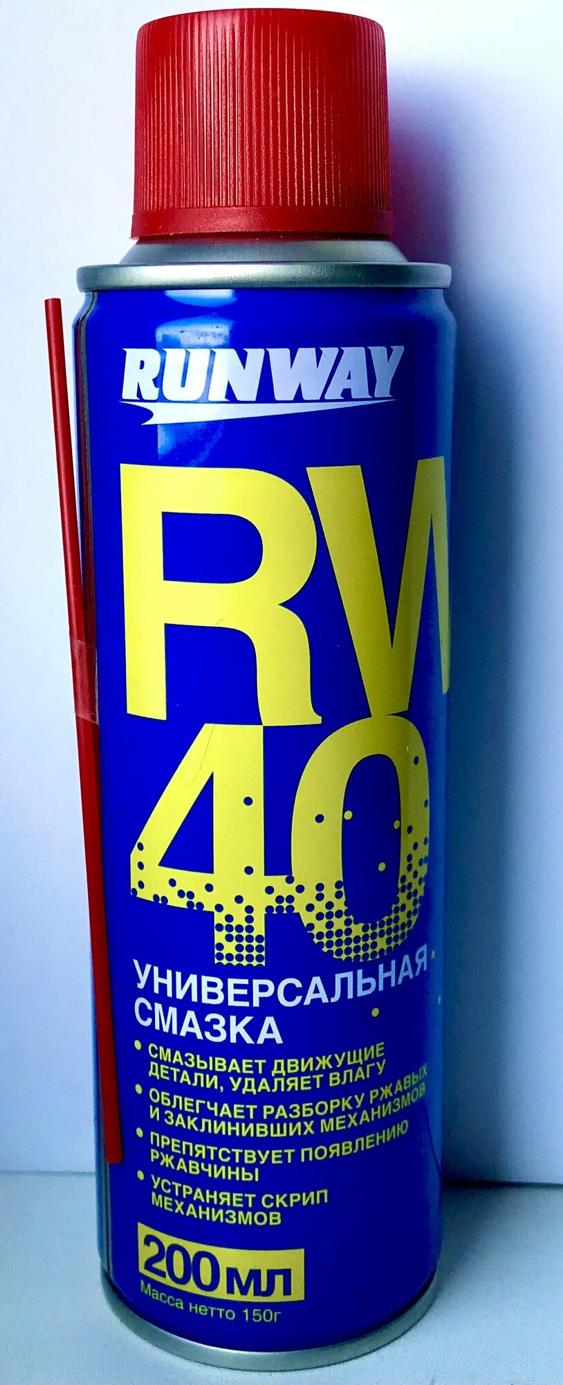 Ниже Вы можете прочитать отзывы на Смазка универсальная RW-40 200 мл, аэрозоль с трубочкой, RUNWAY RW6096, ознакомится с подробными характеристиками, посмотреть интересные обзоры и фотографии на Смазка универсальная RW-40 200 мл, аэрозоль с трубочкой, RUNWAY RW6096.