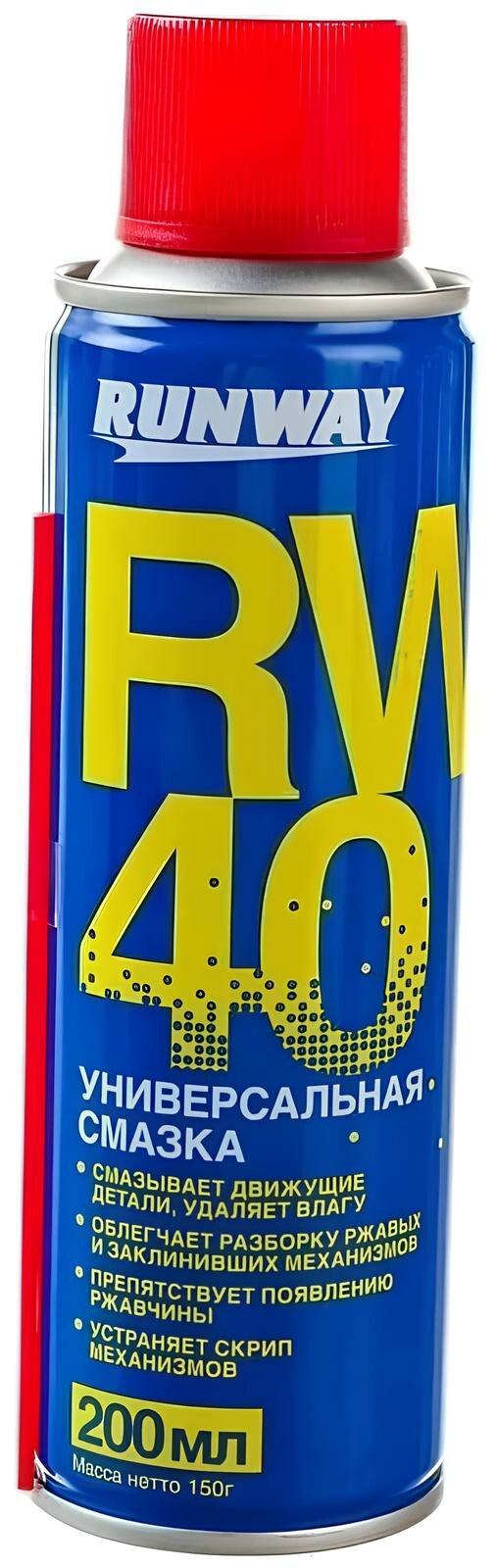 Смазка универсальная RW-40 (аналог WD-40) 200 мл, с трубочкой, RUNWAY RW6096