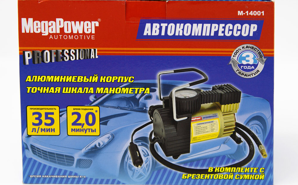 Компрессор автомобильный M-14001 35л/мин MEGAPOWER