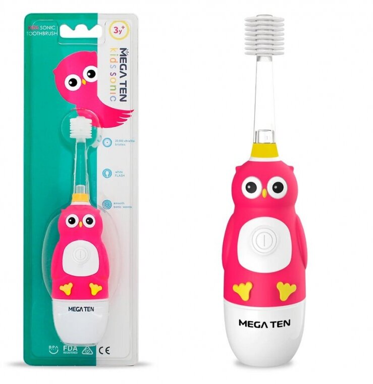 звуковая зубная щетка MEGA Ten Kids Sonic Совушка, розовый/белый