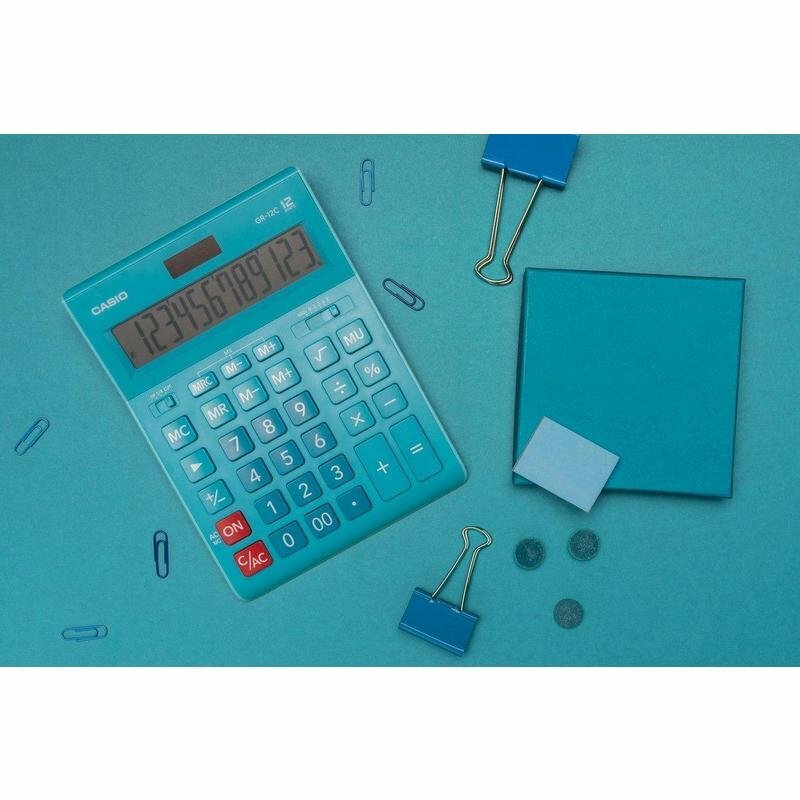 Калькулятор CASIO GR-12C-LB, 12-разрядный, голубой