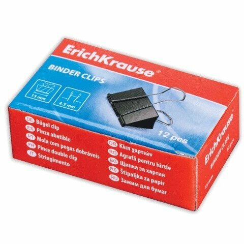 Зажимы для бумаг ErichKrause®, 15мм (коробка 12 шт.) 25085 интересное: