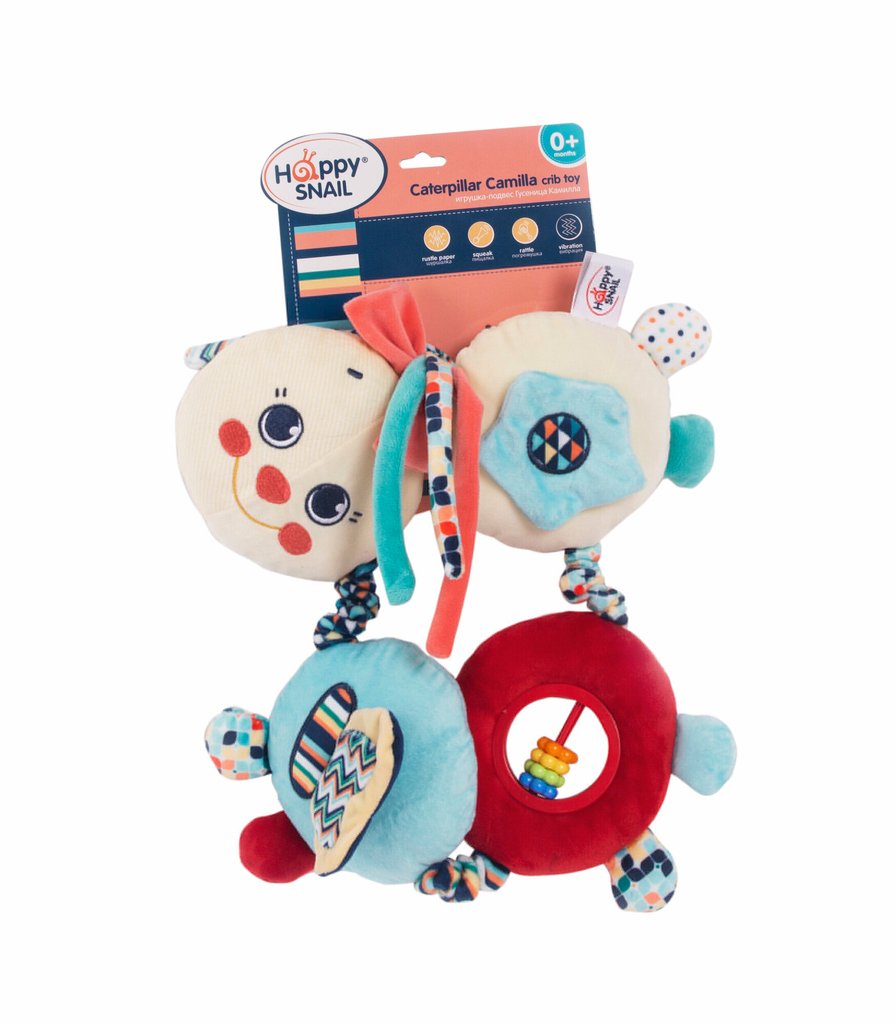 Подвесная игрушка погремушка для новорожденных Веселая гусеница Камилла Happy Snail