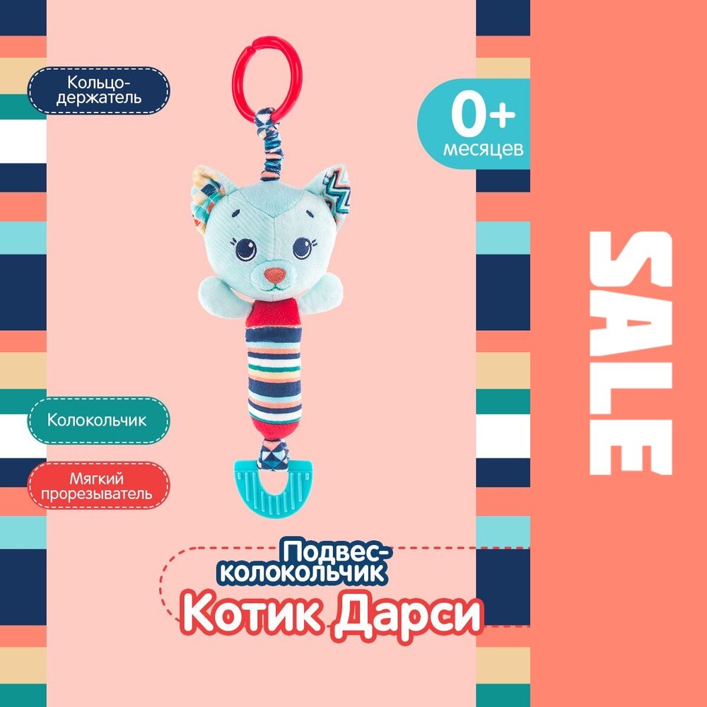 Купить Подвесная игрушка колокольчик для новорожденного Котик Дарси Happy Snail