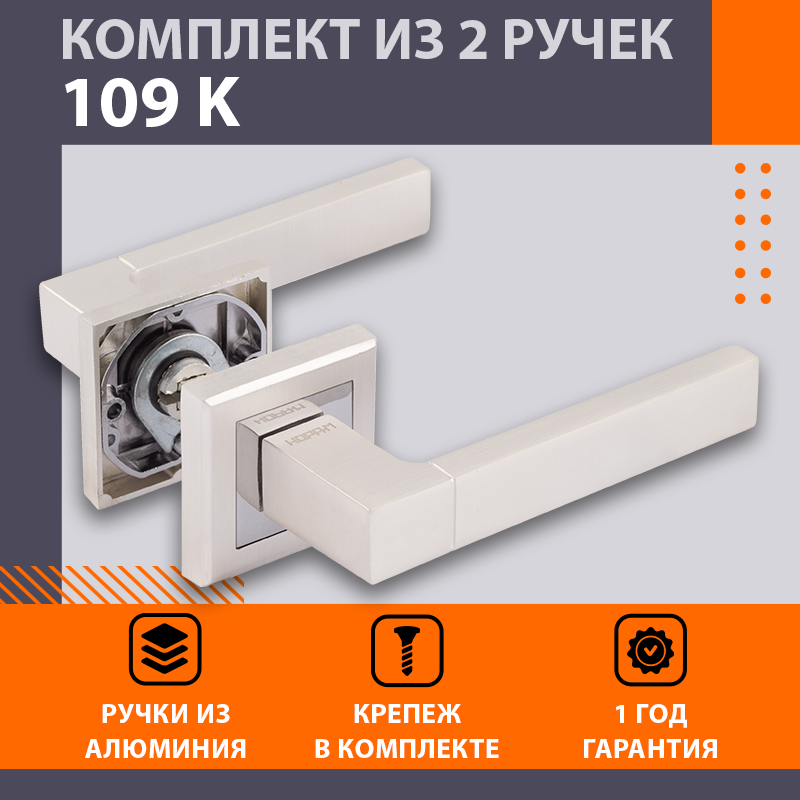 Ручка дверная 109K AL, матовый никель Нора-М 16133