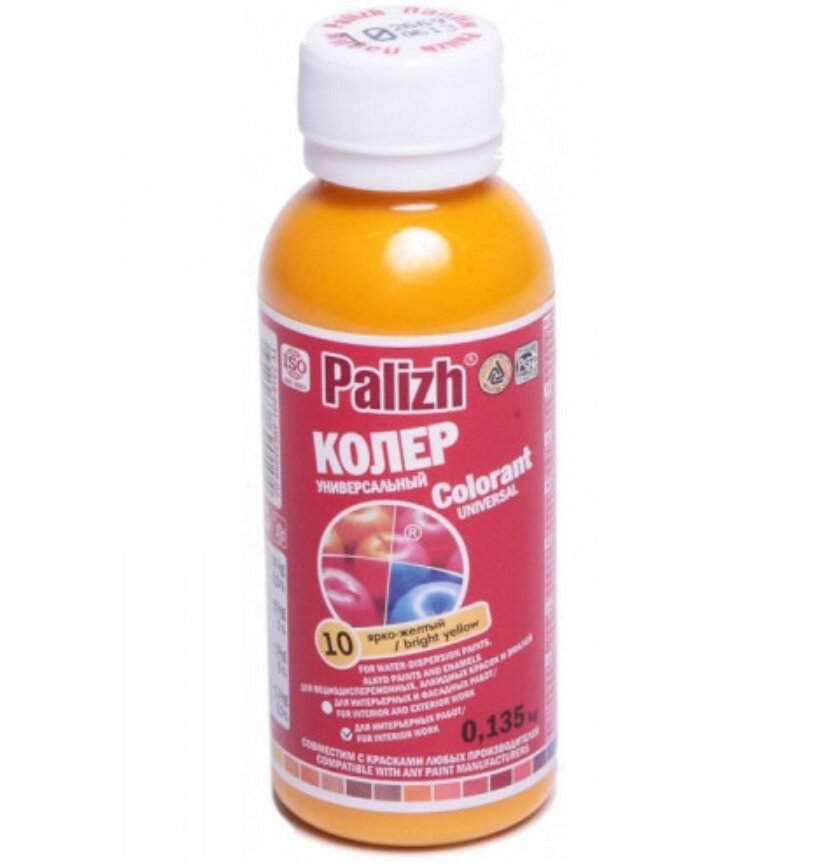 Колер для краски "Palizh STANDART" 0,1л № №10 ярко-желтый