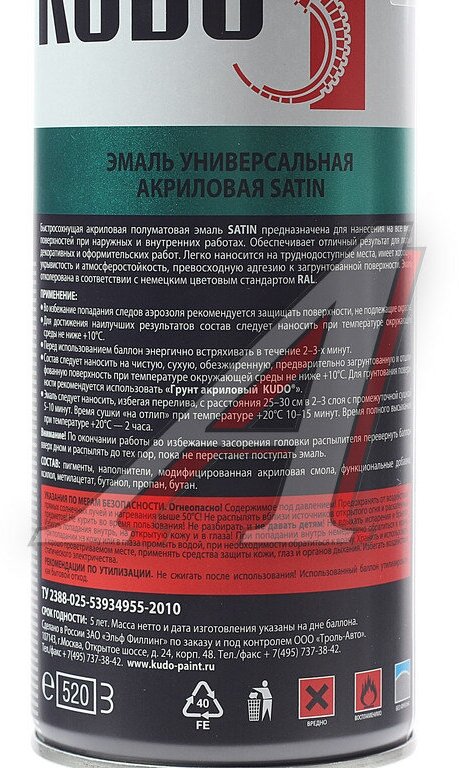 Эмаль универсальная акриловая satin RAL 6005 (темно-зеленая) KUDO 520мл. /кор.6шт./ KU-0А6005 KUDO KU-0A6005 | цена за 1 шт