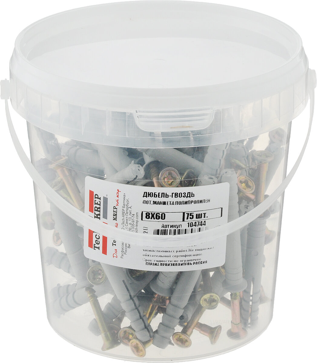 Дюбель-гвоздь Tech-Krep 8х60 пот. манжета (полипропилен) (75 шт) - ведро 104744 104744