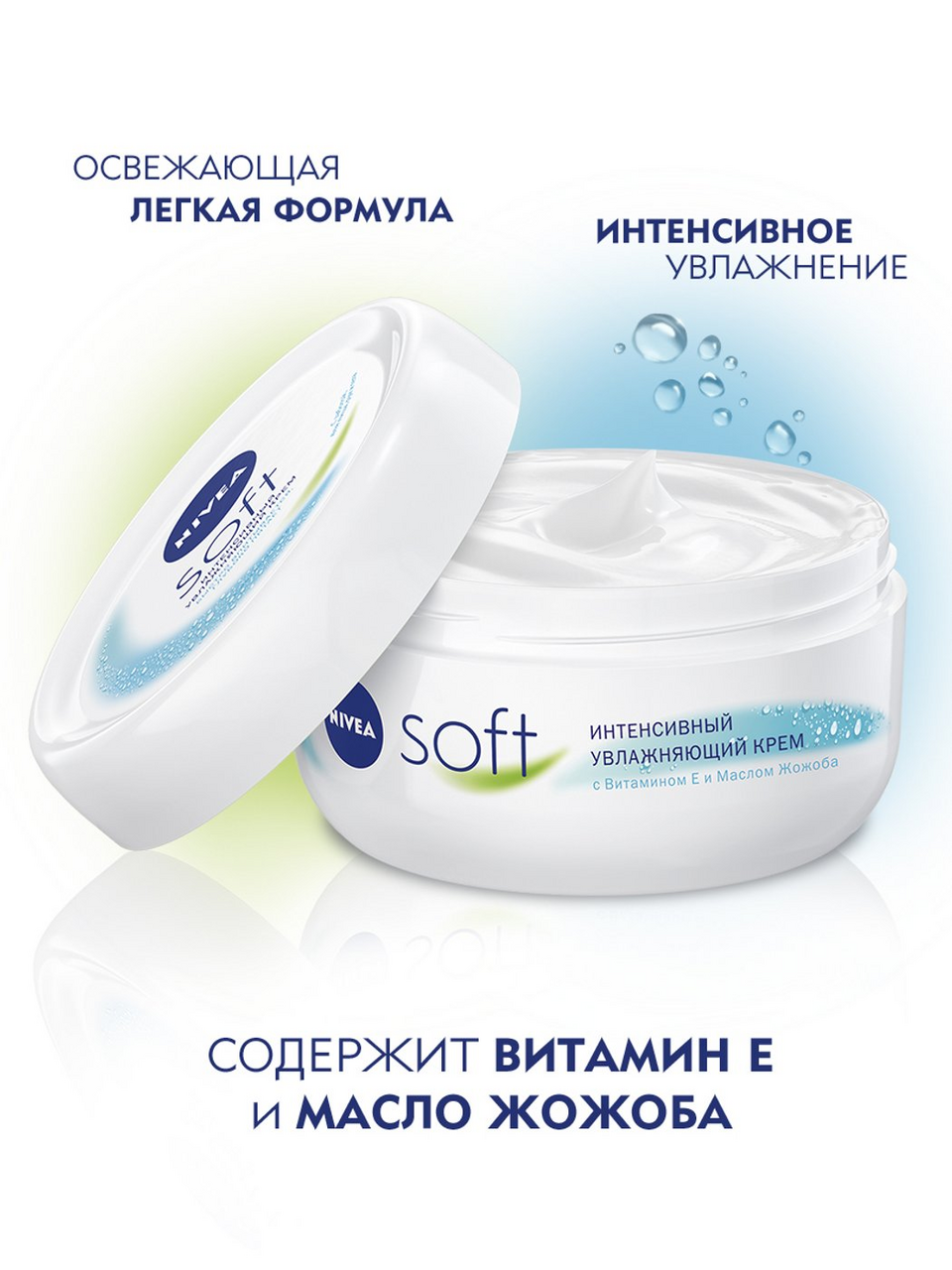 СохранитьNivea Интенсивный увлажняющий крем NIVEA Soft для лица, рук и тела с маслом жожоба и витамином Е, 2 x 100 мл (2 штуки) интересное: