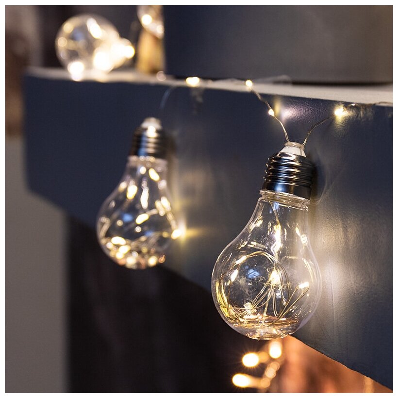 Гирлянда светодиодная «Ретро-лампы» 3 м, белое свечение, батарейки 3хАА NEON-NIGHT