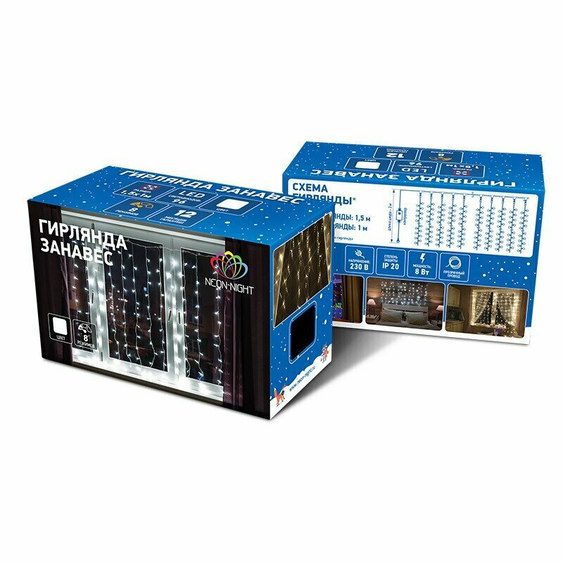 Гирлянда занавес LED NEON-NIGHT Светодиодный Дождь белый 8 режимов 1,5*1,5 м 235-035