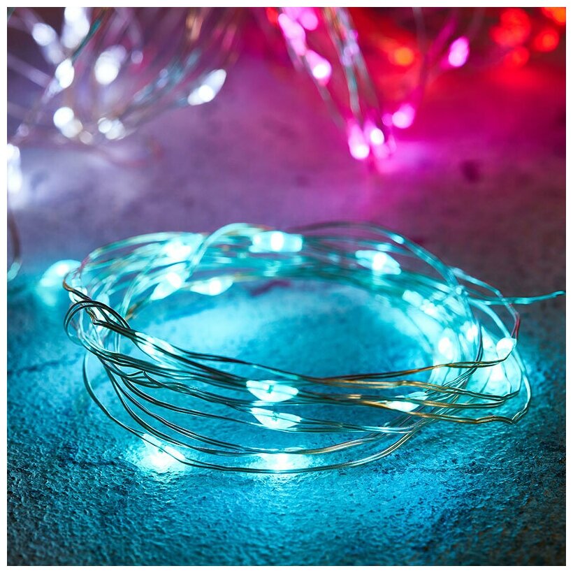 Гирлянда Роса, 2 м, 20 диодов, цвет бирюзовый, тонкий батарейный блок