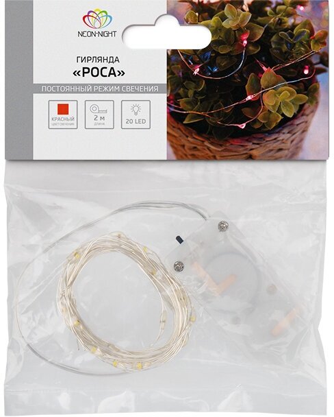 Гирлянда светодиодная "Роса" 2м 20LED красн. 1.5Вт IP20 Neon-Night 303-002