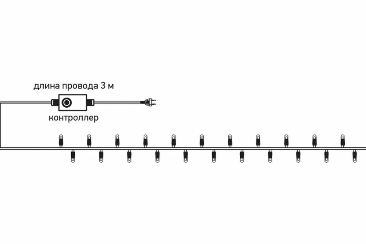 Электрогирлянда новогодняя NEON-NIGHT 303-186, 10 м, 80 ламп, теплый белый