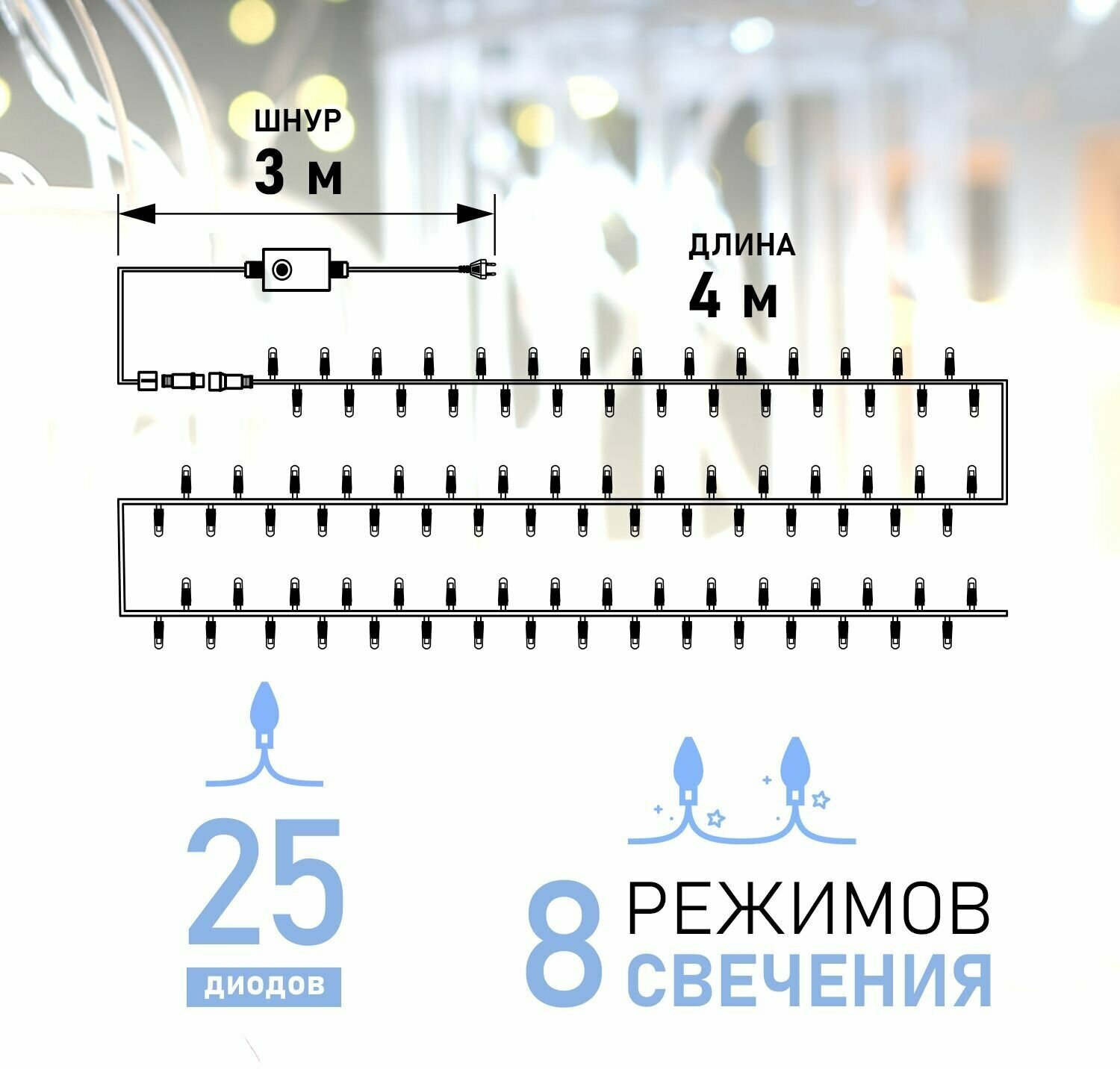 Светодиодная гирлянда "Твинкл Лайт" Neon-Night 4 м с 8 режимами, белое свечение интересное: