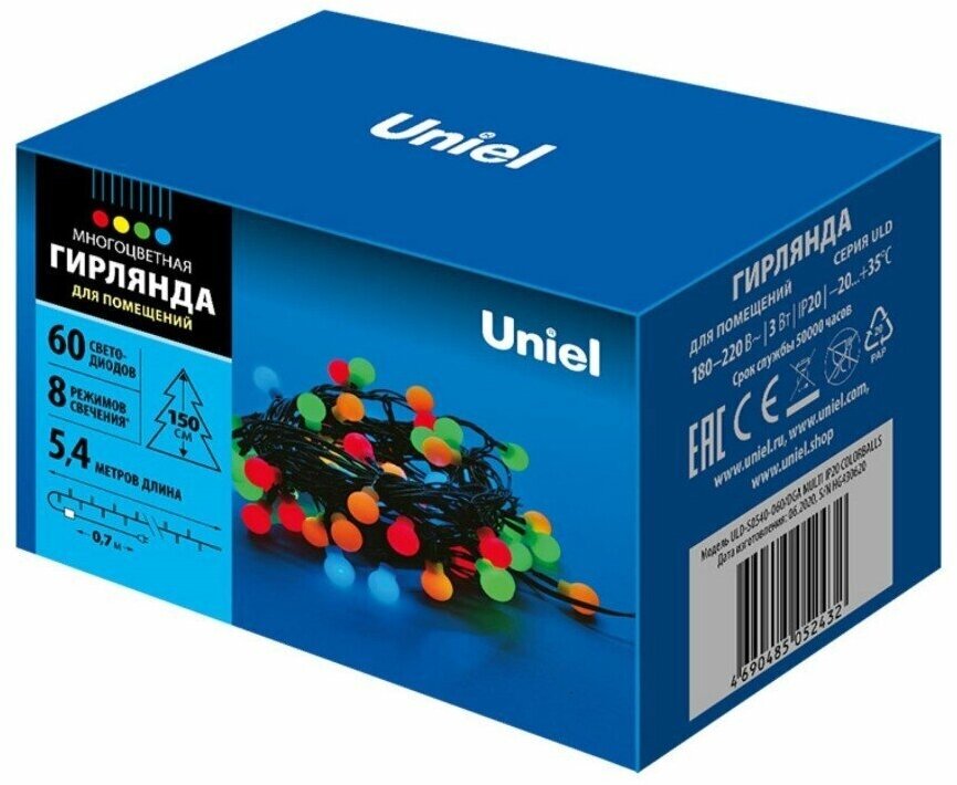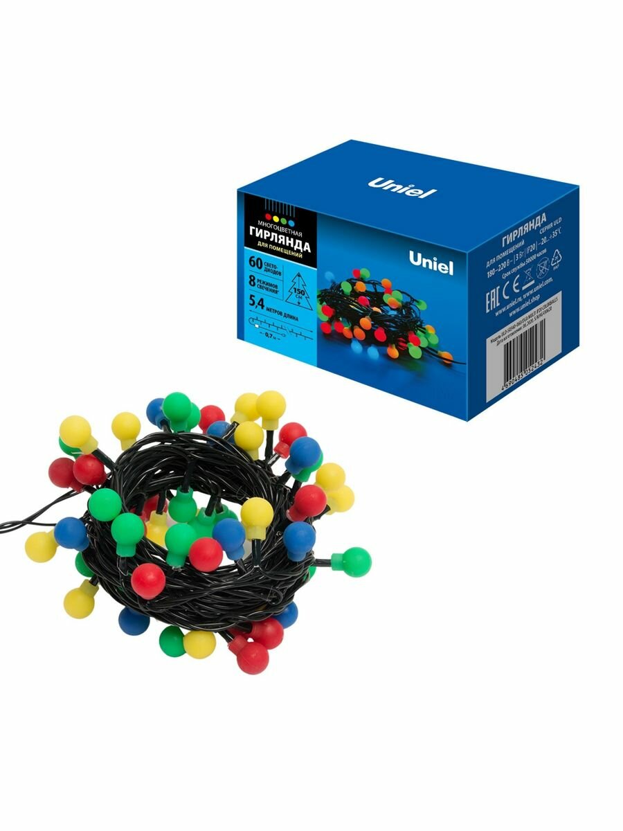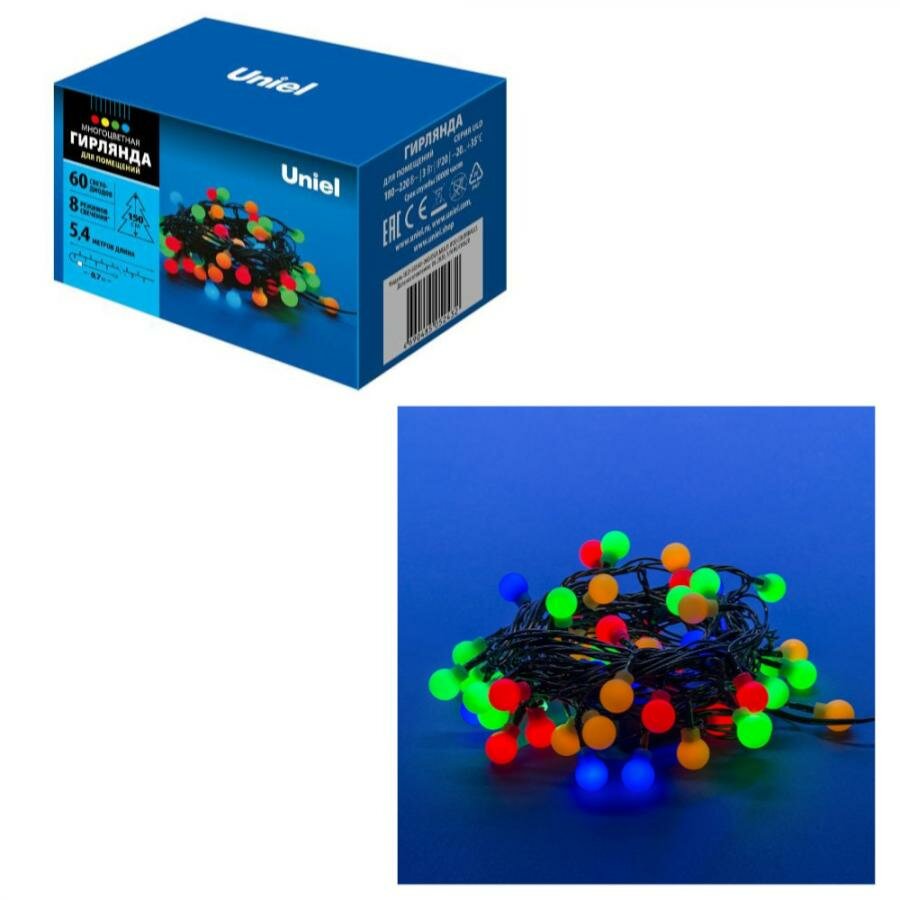 Гирлянда внутренняя Uniel Разноцветные шарики 60хLED 5.4м.